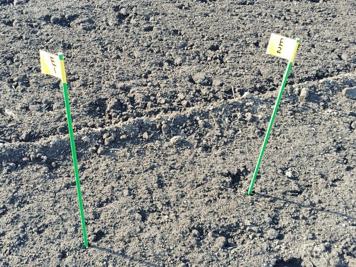 とりあえず最初に作るうねの幅に支柱で目印を作っておいた。